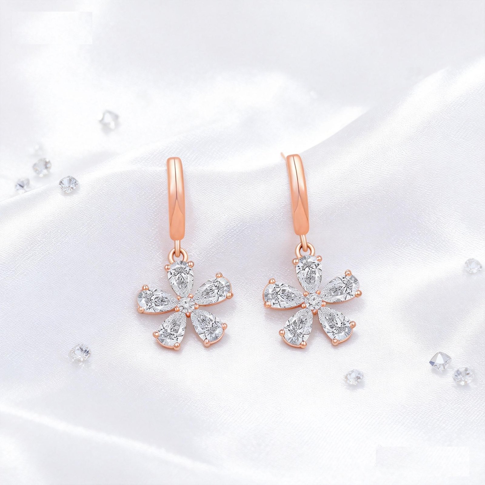 Lab Grown Diamond Pear & Round shape Earrings in 925 Silver with Rose Gold Plating