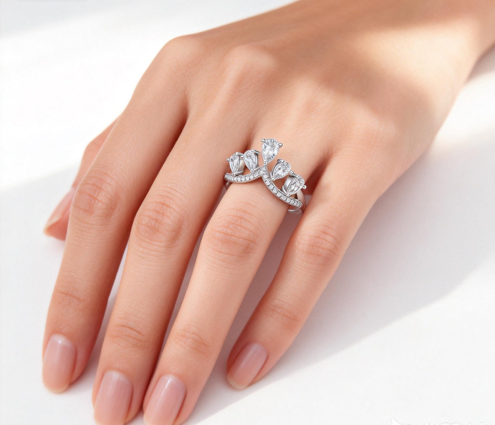 Lab Grown Dimond Pear& Round shape Ring in 925 silver. Diamond total weight: 2.38ct. US#7