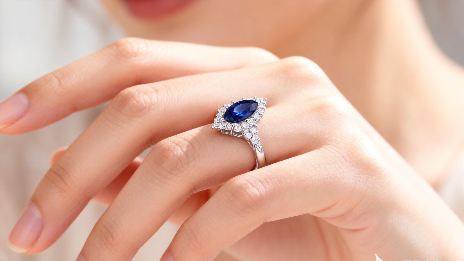 Created Blue sapphire marquise shape and Lab grown diamond ring in 925 silver, diamond total:1/2ct.
